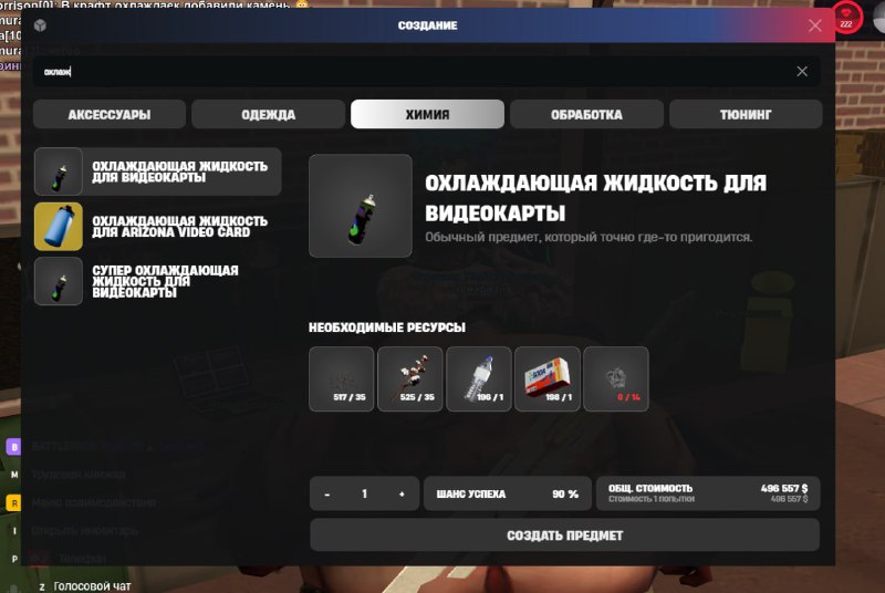 ⚡️ В крафт охлаждающей жидкости был добавлен камень! Теперь для крафта предмета вам понадобится 14 камня (Без охранника) Arizona ❤️ Предложить новость