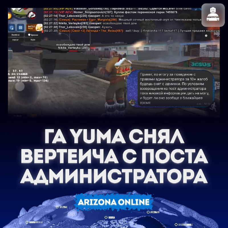 UPD: Администратор был восстановлен по решению Красной Администрации! Arizona ❤️ Предложить новость