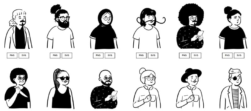 Open Peeps — коллекция черно-белых hand-drawn иллюстраций в форматах PNG и SVG
