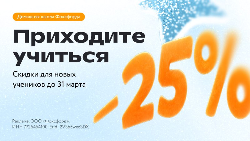 ОбразованиеО нас: https://taplink.cc/foxford_homeschool 📕 Полноценная школа онлайн с 1 по 11 класс 🙋♀️ Учителя из лучших школ России 🦊 Попробуйте 7 дней бесплатно ⬆️ По всем вопросам: @foxfordschool_bot Регистрация канала в РКН — заявление № 6805137471