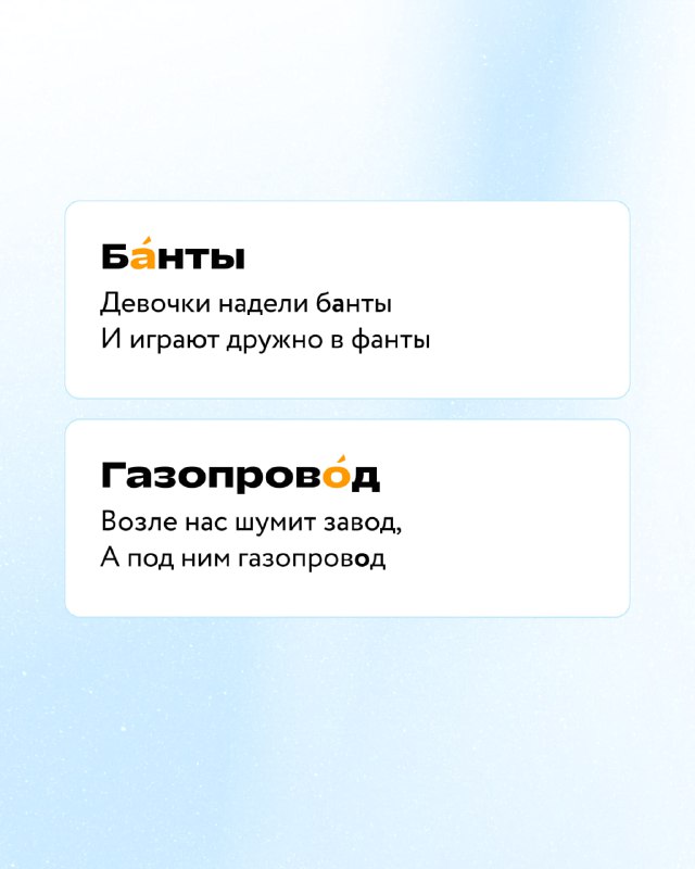 Ставим ударения правильно 🖊️ В карточках собрали весёлые стихи, которые помогут вашему ребёнку научиться говорить грамотно и не задумываться над правильным произношением. Узнать о школе | Подписать