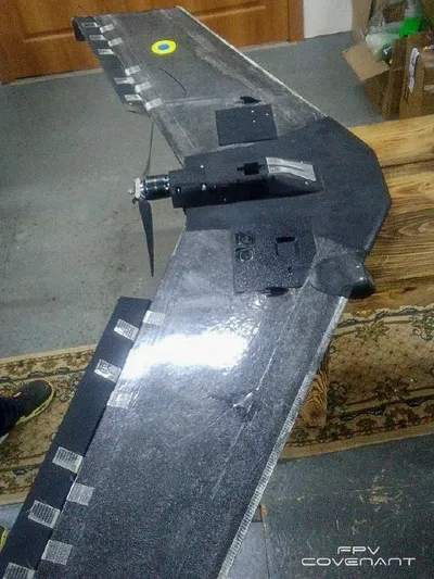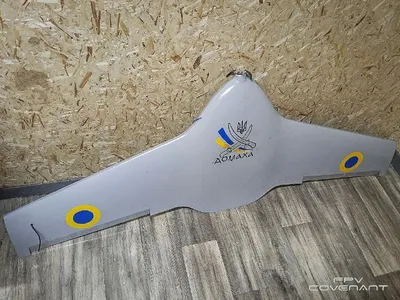 Разведывательный борт Домаха приземлили наши товарищи. Предназначен для воздушной разведки и корректировки артиллерийского огня. Размах крыла 1.9 метра. Взлетная масса около 5 кг. Потолок - до 3х км