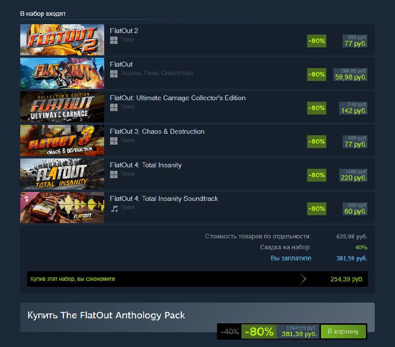 Все 6 частей мясных гонок FlatOut можно купить за 382 рубля — бандл получил скидку в 80% В первые две части улучшили графику, добавили ачивки и мультиплеер. Забирайте до 4 марта 🎮 FreeGamer | Игров