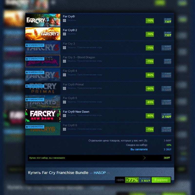 🧚♀️ В Steam на всю серию Far Cry действует огромная скидка ▫️Far Cry — 735₸ (~113 рублей) ▫️Far Cry 2 — 735₸ (~113 рублей) ▫️Far Cry 3 — 1224₸ (~189 рублей) ▫️Far Cry 3 - Blood Dragon — 918₸ (~142