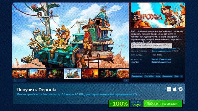 В Steam раздают Deponia — это рофляный point-and-click квест о попытке сбежать с планеты-свалки Лутаем имбу до 16 марта и получаем +1 к значку коллекционера 🎮 FreeGamer | Игровая халява