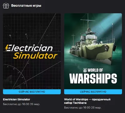 ‼️ В Epic Games Store началась раздача двух игр ▫️Electrician Simulator — реалистичный симулятор электрика ▫️World of Warships: праздничный набор Tachibana — японский премиум эсминец с уникальными к