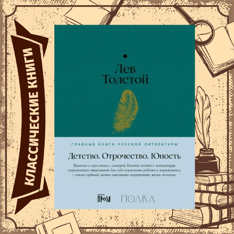 📙 Детство. Отрочество. Юность ✍🏻 Лев Николаевич Толстой В повести "Юность" Лев Толстой исследует внутренний мир молодого человека, стремящегося найти свое место в жизни. Главный герой, Николай Ильи