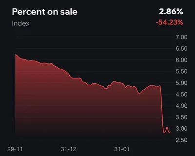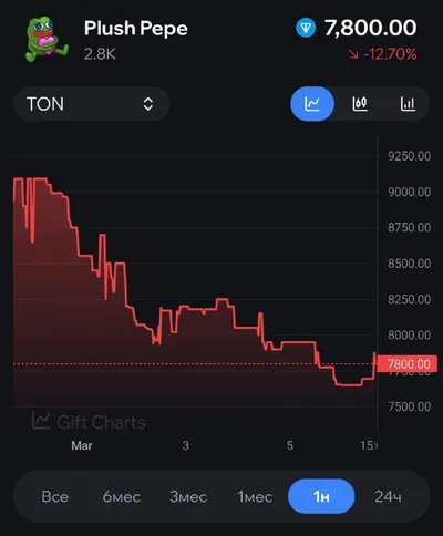 📉Подарков в продаже всё меньше Сейчас на маркетплейсах выставлено 2.86% гифтов — это в 2 раза меньше, чем было в конце ноября. Всё больше пользователей холдят подарки в долгую, а не сливают их на ры