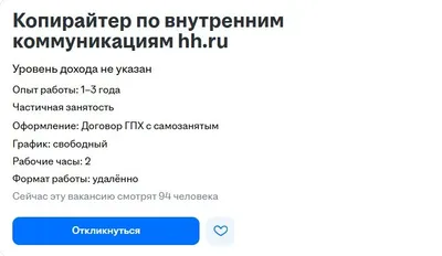 [Свежий инфоповод] [Каламбур дня — #вакансия копирайтера в hh.ru, размещённая на сайте hh.ru: 🧷 hh.ru/vacancy/131908096 Работа с текстами для сотрудников. Удалённо. Частичная занятость. Условия г