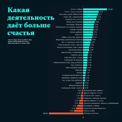 Какая деятельность повышает или снижает наш уровень счастья Ну с пограничными экстремумами – всё понятно. А вот то, что «садоводство, участок» вошло в топ-5, эт конечно интересно. Я в свои 39 уже