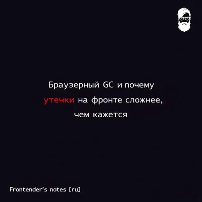 Браузерный GC и почему утечки на фронте сложнее, чем кажется Есть ощущение, что в браузере всё безопасно. GC же есть — значит память сама почистится. На практике утечки на фронте происходят регулярн