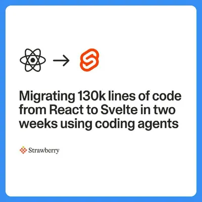 😧 Переписали 130K строк с React на Svelte за две недели Интересный кейс от Strawberry: команда полностью перенесла фронтенд браузера с React на Svelte всего за две недели с помощью coding agents. П
