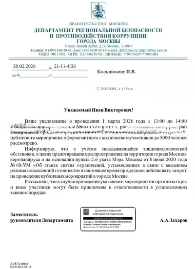⚡️Разрывная: мэрия Москвы отказала в митинге против блокировки Telegram Власти Москвы не согласовали проведение акции против возможной блокировки Telegram, сославшись на действующий запрет массовых м