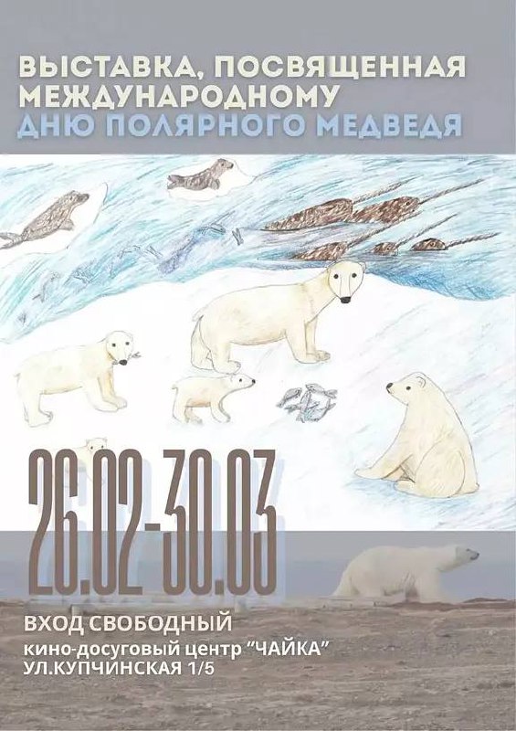 🐻❄️ В киноцентре «Чайка» открылась выставка о белых медведях До 30 марта в киноцентре «Чайка» на Купчинской, 1/5 работает экспозиция, приуроченная к Международному дню полярного медведя. Свои работ