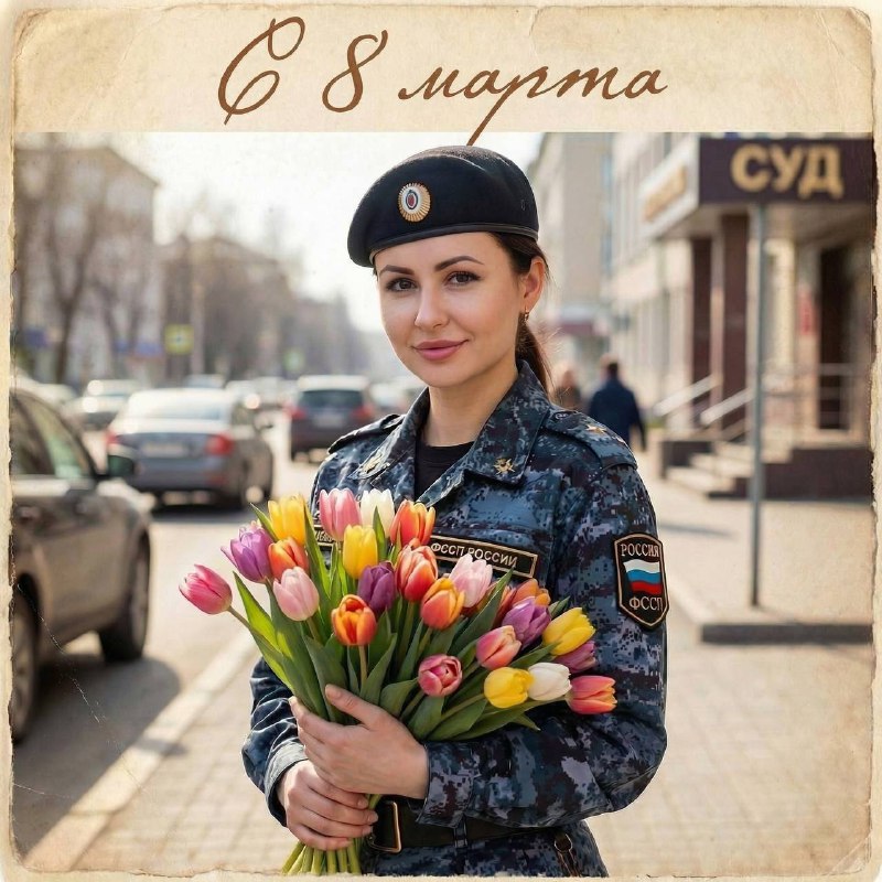 С Международным женским днём! С 8 марта!💐 На кануне праздника, в рамках акции «Вам, любимые!», сотрудники органов принудительного исполнения из разных уголков России дарили девушкам весенние букеты