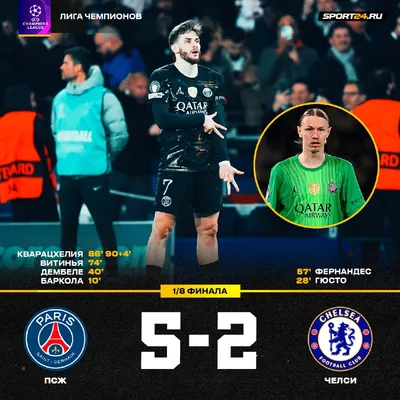 Семь голов накидали друг другу «ПСЖ» и «Челси», но французы оказались сильнее ⚡️ Хвича отдал ассист и оформил дубль, а Сафонов сделал несколько важных сейвов — в пропущенных мячах вины Матвея нет.