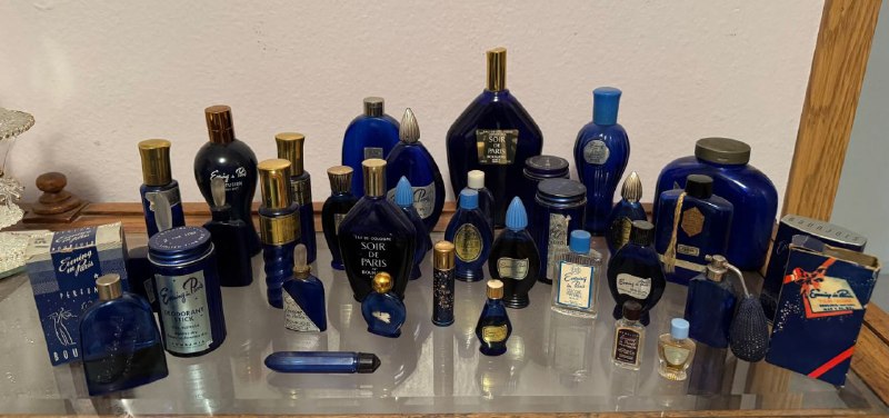 Красоту покажу. Увидела вот такое собрание «Evening in Paris» Bourjois в комьюнити коллекционеров. Заодно похвастаюсь: такая коробочка с золотыми флаконами по центру у меня тоже есть, ещё и с сине-г