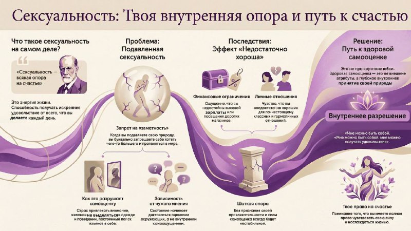 «Сексуальность всякая опора на счастье» Фрейд Многие привыкли думать, что сексуальность - это только про секс или внешность. Но если мы обратимся к Фрейду, то увидим гораздо более глубокий смысл. Для