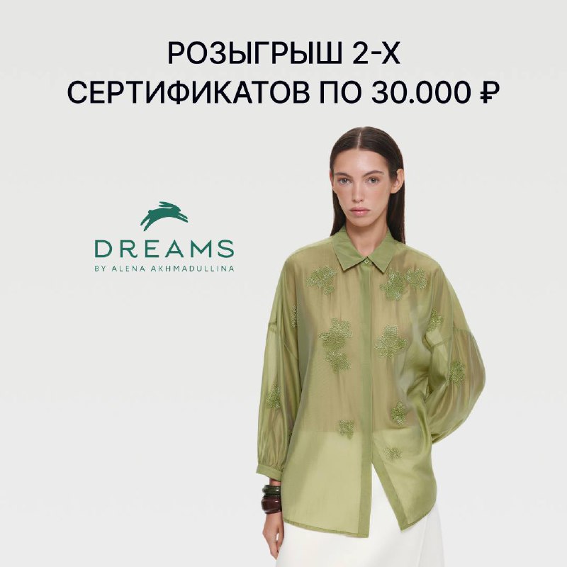 РОЗЫГРЫШ 60 000 ₽ НА ШОПИНГ В DREAMS BY ALENA AKHMADULLINA 🤍 до 7 марта Выиграйте один из 2-х сертификатов номиналом 30 000 ₽ на шопинг. Что нужно сделать для участия: – в приложении GaleriaClub а