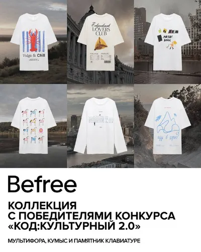 BEFREE ВЫПУСТИЛ КОЛЛЕКЦИЮ С ПОБЕДИТЕЛЯМИ КОНКУРСА «КОД:КУЛЬТУРНЫЙ 2.0» 🤍 🤍На принтах победителей – локальные феномены и мемы, от татарского кумыса до сибирской мультифоры. 🌸 Это признание в любв