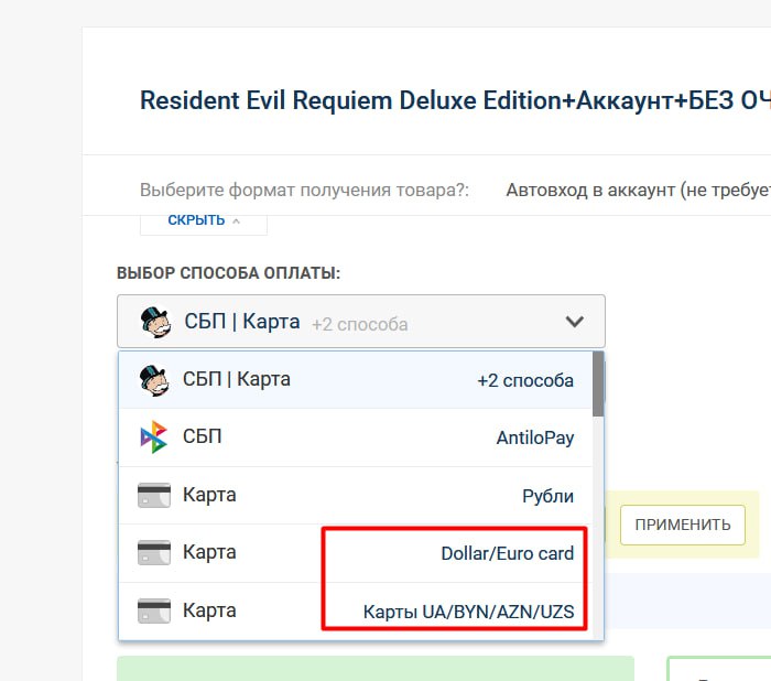 Теперь еще удобнее – оплата картами доступна! https://denuvo.net/goods/ Мы добавили возможность оплачивать покупки любыми картами. Просто нажмите "Купить", и вы увидите все доступные способы оплаты.