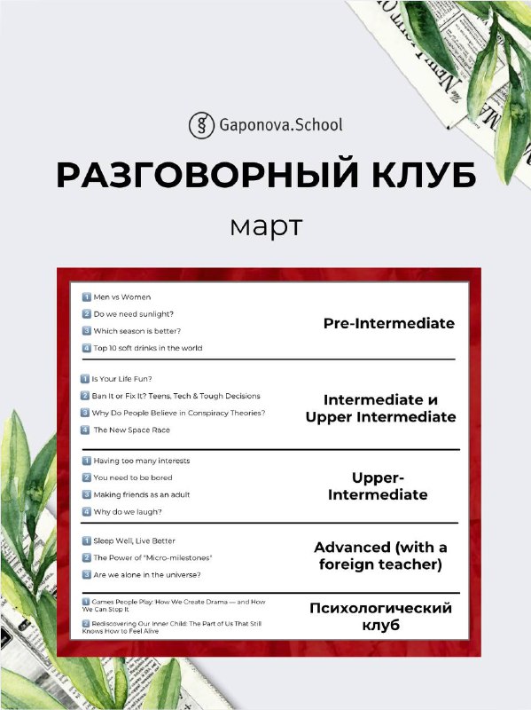 Разговорный Клуб ИЛИ Полный Курс Английского Давайте разберемся! Full English Course – полный курс изучения языка. Групповые занятия по учебнику, где изучаем все аспекты языка: ✔Grammar ✔ Writing