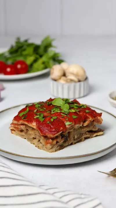 🍴 Постная лазанья без глютена - сытный ужин для всей семьи! Делимся рецептом лазаньи без глютена, без яиц и без молочных продуктов. Она получается с нежной текстурой, богатым вкусом и ароматным соус