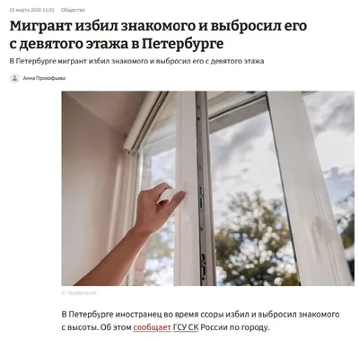 В Петербурге мигрант выбросил знакомого с девятого этажа после попойки В Санкт-Петербурге задержан уроженец Узбекистана, которого подозревают в жестоком убийстве знакомого. По предварительным данным,