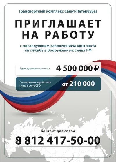 ⚠️ Транспортный комплекс Санкт-Петербурга приглашает на работу с последующим заключением контракта на службу в Вооружённых силах РФ. Предусмотрены следующие льготы: ➡️ банковские и налоговые каник
