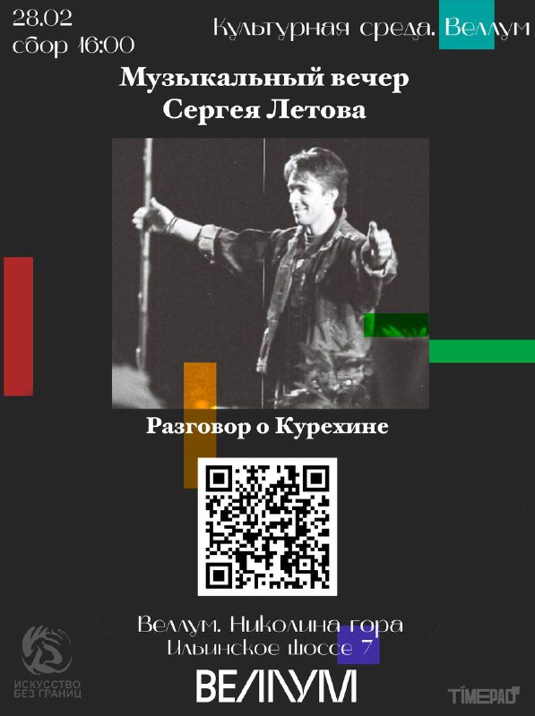 Счастливы сообщить! 28 февраля, в следующую субботу, в КЦ Веллум. Николина гора состоится музыкальный вечер "От свободной импровизации к полистилистике" классика электронной сцены, мультиинструментали