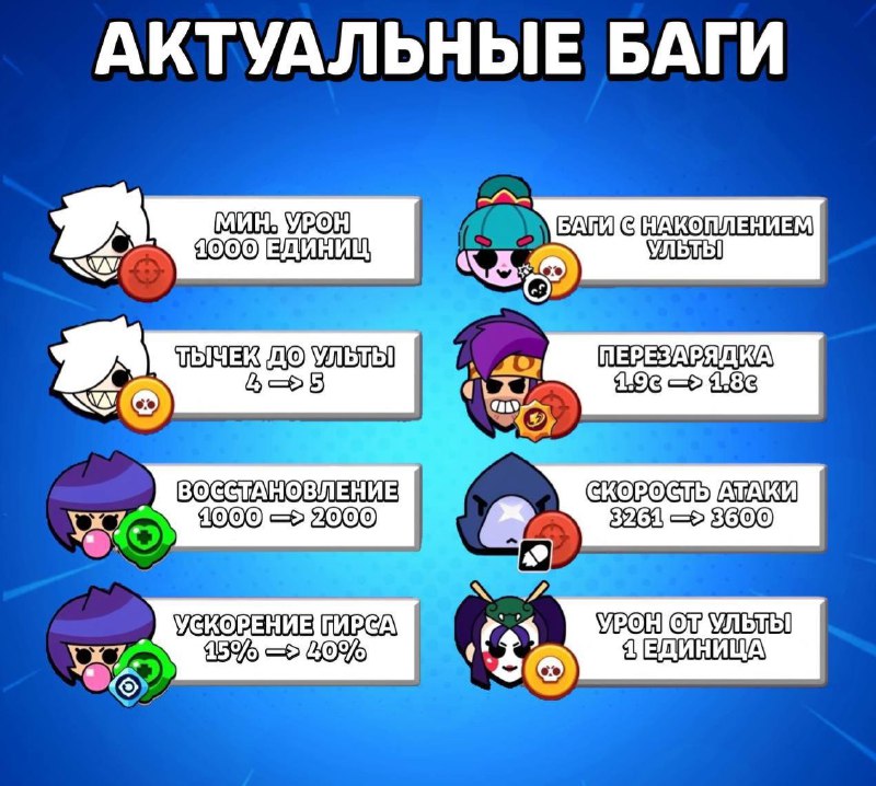 😄 Нынешние баги с бравлерами После обновления и изменения баланса в игре появилось несколько багов с бравлерами: • Колетт заряжает свой супер от 5 попаданий, хотя должно быть 4. Также бравлер нано