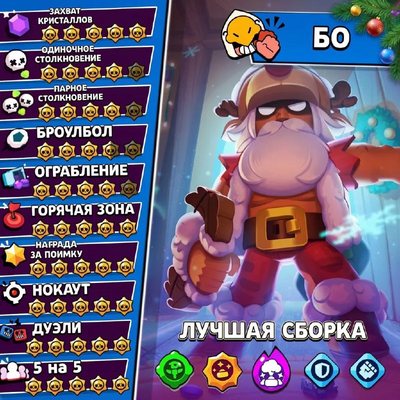 ⚡️ Тир-лист на Бо после обновления. Бафф сделал его значительно сильнее — теперь он уверенно играет во многих режимах, а лучше всего раскрывается в Захвате кристаллов и Горячей зоне