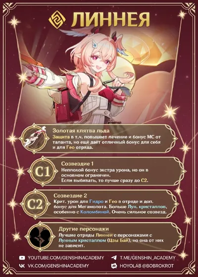 Линнея — мини-гайд. #Сборка #Гео Линнея — это профессиональный консультант Гильдии искателей приключений. Её девиз: Я-хо! Я-хо-хо! 😃 Быстрый гайд Приоритет получения Картинка без сжатия