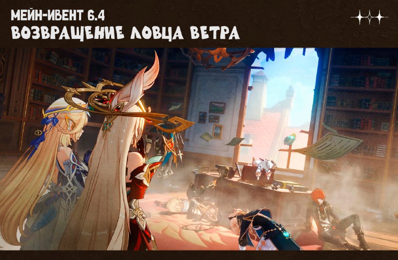 ♦️📍 Важное из мейн-ивента 6.4 «Возвращение ловца ветра» 📎 Сюжет С возвращением экспедиционного корпуса на родину было решено устроить небольшой, но уютный праздник. Ведьмы создали пузырь памяти —