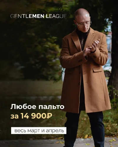 Весна ближе — пора обновить верхнюю одежду. Только в марте и апреле — все пальто в GENTLEMEN LEAGUE по фиксированной цене 14 900 ₽! - Любые модели в магазине — от классики до современного кроя — по о
