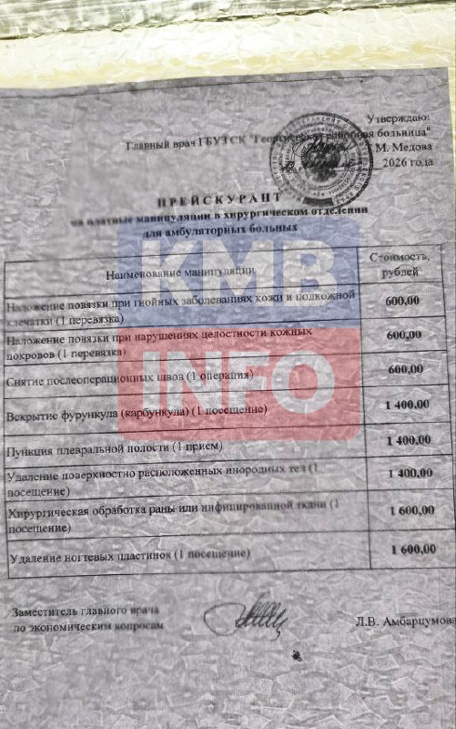 🧾 Бесплатная медицина ВСЁ? В больнице Георгиевска вывесили прайс-лист с ценами на услуги по ОМС Пишет жительница города: Хотелось бы разъяснения от вышестоящих инстанций. Поступила из приемного пок