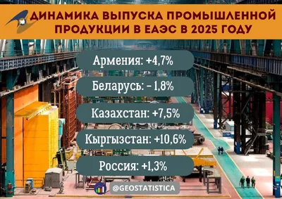 📊Промышленный рост в ЕАЭС составил 1,6% в 2025 году Больше всего нарастил промышленный потенциал Кыргызстан. Ему удалось увеличить производство сразу на 10,6%. В аутсайдерах же оказалась Беларусь, гд
