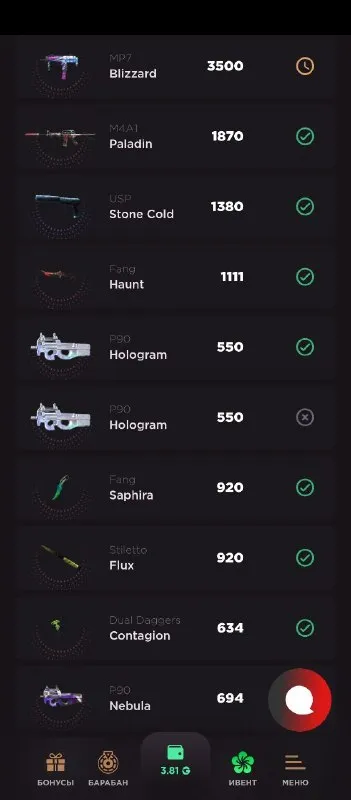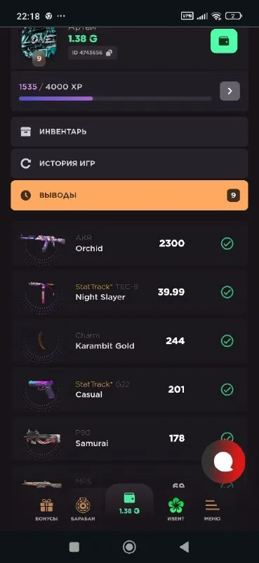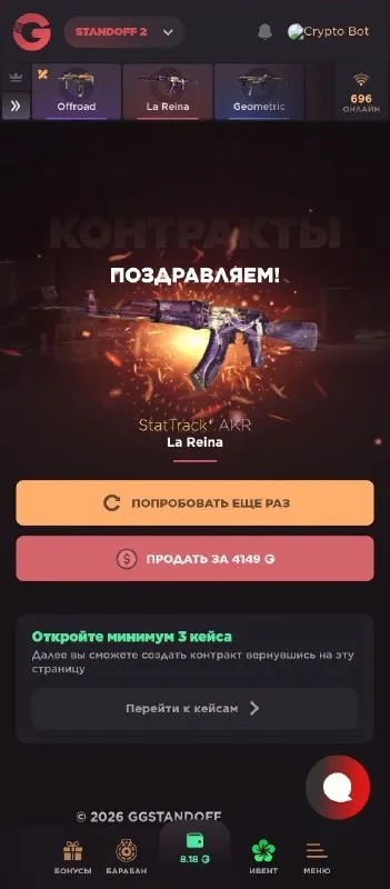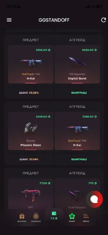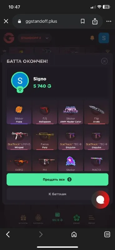 Спасибо ггшке, задонил 500г, поднялся, открыл кейс турбо и откуда вкусный скин за 3к😋 ID 6898646 💬Админ: А ты еще сидишь и думаешь что на сайте не везет? Гоу тестить свою удачу на GGSTANDOFF <3