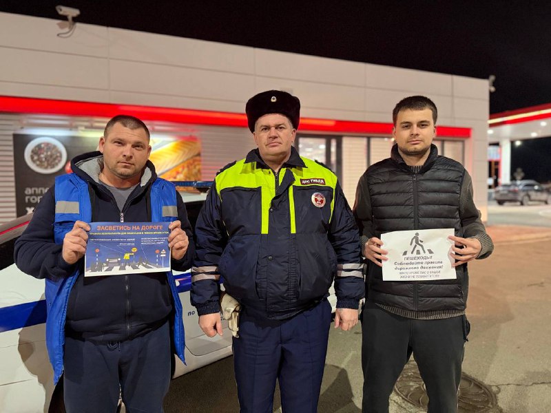 В Тимашевском районе сотрудники Госавтоинспекции провели акцию с пешеходами в тёмное время суток 👮♂️ Автоинспекторы напомнили участникам дорожного движения о необходимости использования световозвра