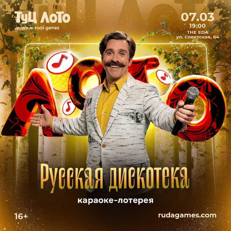 Идея на праздничные выходные: посетить караоке-лотерею Туц Лото «Русская дискотека» 📍7 марта, 19:00, Гастромаркет «THE EDA», ул. Советская, 64 Как будет проходить лотерея? ~ Игроки получают лот