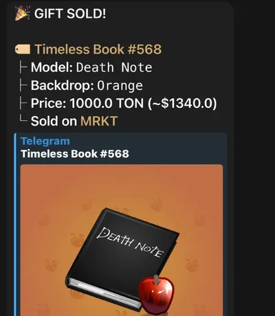 📕Кто-то купил тетрадь смерти за 1000 TON ($1340) Норм цена?👍/👎 Gift Digest