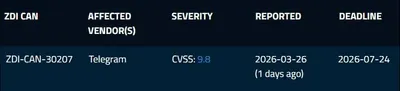 ☄Критическая угроза в Telegram Обнаружена zero-day уязвимость с оценкой 9.8/10, которая потенциально ставит под риск любой аккаунт. Атака возможна без действий пользователя и даже без прямого доступ