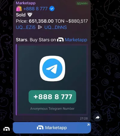 Анонка +888 8 777 ушла за $880,500 (70 000 000 рублей) Теперь это самый дорогой анонимный номер за всю историю телеги. ❤️ – спайс