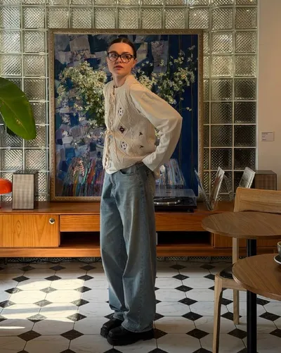 образ дня ☕️ жилетка [ ссылка ] у меня XL шапка [ ссылка ] очки [ ссылка ] лонг [ ссылка ] джинсы ZARA ботинки Lera Nena ещё были серьги [ ссылка ] и кольцо это отличное [ ссылка ]