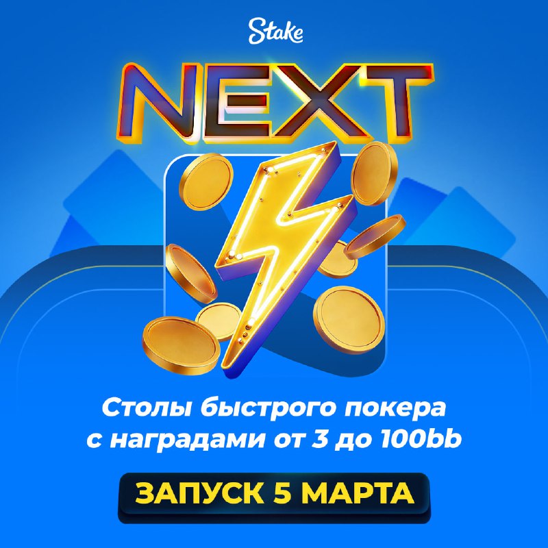 ⚡️ С завтрашнего дня на Stake Poker запускаются быстрые столы — «Next!» В них разыграют 1,000,000 кэшдропами: награды будут падать рандомно от 3 до 100bb, пока не разыграют весь призовой фонд. Такж