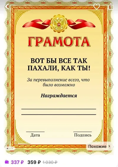 На маркетплейсах найдена грамота, которая лучше премии. По мнению начальства, конечно!