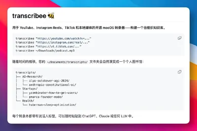 transcribee Когда натыкаюсь на полезные видео на YouTube или TikTok и хочу разобрать контент в текстовые заметки, чтобы потом гонять это через AI, вручную конспектировать слишком выматывает. А сущест