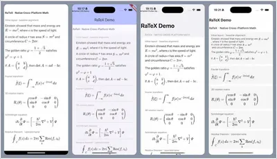 RaTeX В мобильном интерфейсе при рендеринге математических формул невозможно обойти проблему с WebView. За одной формулой фактически скрывается целый браузерный движок — высокий расход памяти и медле