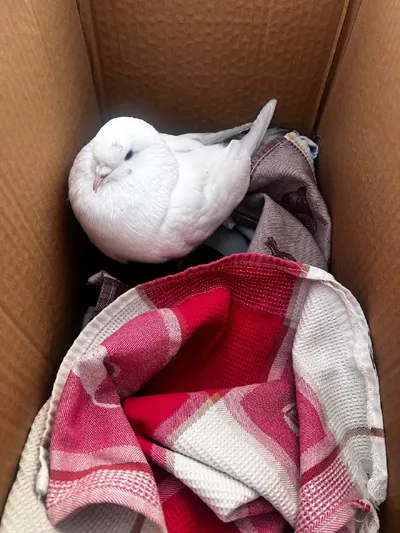 кто в курсе, у нас в городе кто-то голубей держит? вот такой пассажир на участке, летать не летает, но, вроде как, не дикий