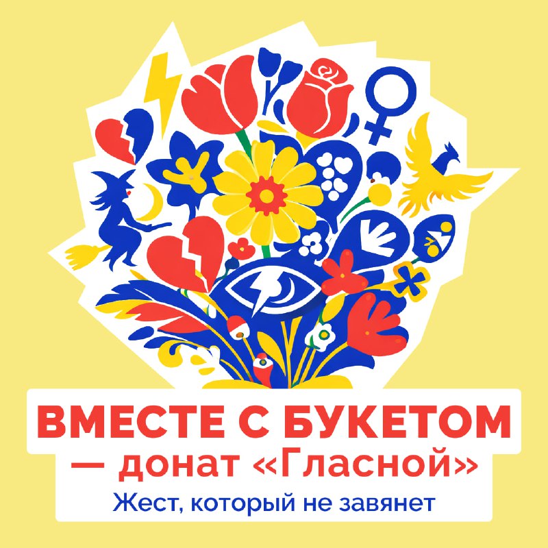 Вместе с букетом — донат «Гласной» НАСТОЯЩИЙ МАТЕРИАЛ (ИНФОРМАЦИЯ) ПРОИЗВЕДЕН И РАСПРОСТРАНЕН ИНОСТРАННЫМ АГЕНТОМ «ГЛАСНАЯ» ЛИБО КАСАЕТСЯ ДЕЯТЕЛЬНОСТИ ИНОСТРАННОГО АГЕНТА «ГЛАСНАЯ». 18+ 8 марта — хо